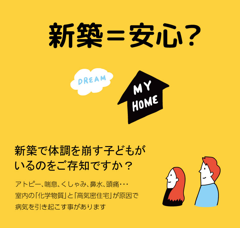 ところが、実際に新居に移った後、「子どもの咳が止まらない、アレルギー症状が強くなる、肌に湿疹が出る」など、思いがけない体調不良に悩むご家庭が増えています。