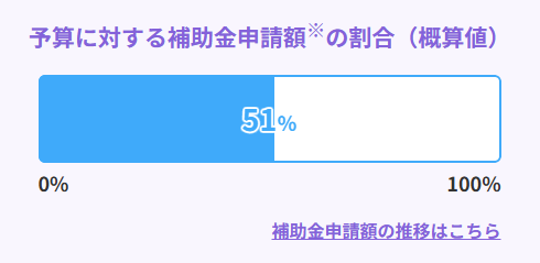 予算に対する補助金申請割合は現在51%です。(2025/11/20時点)
